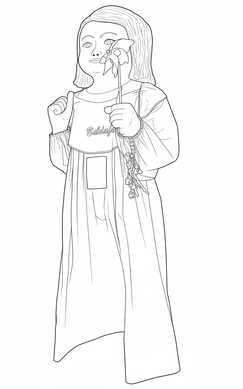La Baldufa, aquesta gegantona representa una nena rossa, petita, tendra i bufona, va ser pionera en el món dels gegants de les escoles bressol de Mataró. Aquesta geganta pertany a l'escola bressol del barri de Cerdanyola i va ser presentada i babatejaden la Festa de la Primavera de l'any 1992 La Baldufa va néixer per iniciativa de l'Associació de Mares i Pares (AMPA) i de les educadores de l'escola, en una època en què no era gaire comú trobar gegants a les escoles, i en el seu disseny van participar-hi unes vuit famílies; el seu constructor va ser Toni Maymó, constructor també d'altres gegants mataronins. Aquesta geganta representa la figura d'una nena petita que va a l'escola, i el nom de Baldufa, va ser escollit per què resultava atractiu pels menuts. Els membres de la colla expliquen una anècdota curiosa: quan arriba l'edat que els menuts han de deixar el xumet, el fiquen a la motxilla que porta la Baldufa i així, d'aquesta curiosa manera, les professores aconsegueixen que els nens no protestin. A la fotografia la veiem amb el seu vestit de festa, ben arreglada per sortir a les cercaviles més importants, però normalment va amb la seva bata, com una nena més de l'escola.