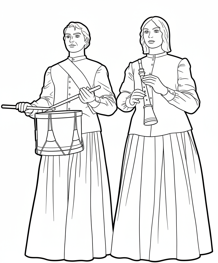 Representen dos dolçainers. Van vestits amb la camisa que duen la colla. Ella és un tabaler i ella una dolçainera.