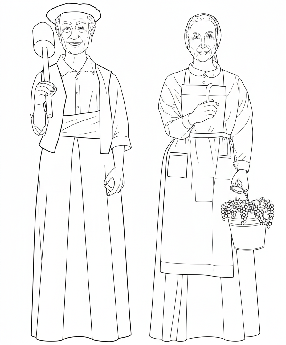 Estan inspirats en dos veïns del poble, simbolitzen el treball a la vinya.