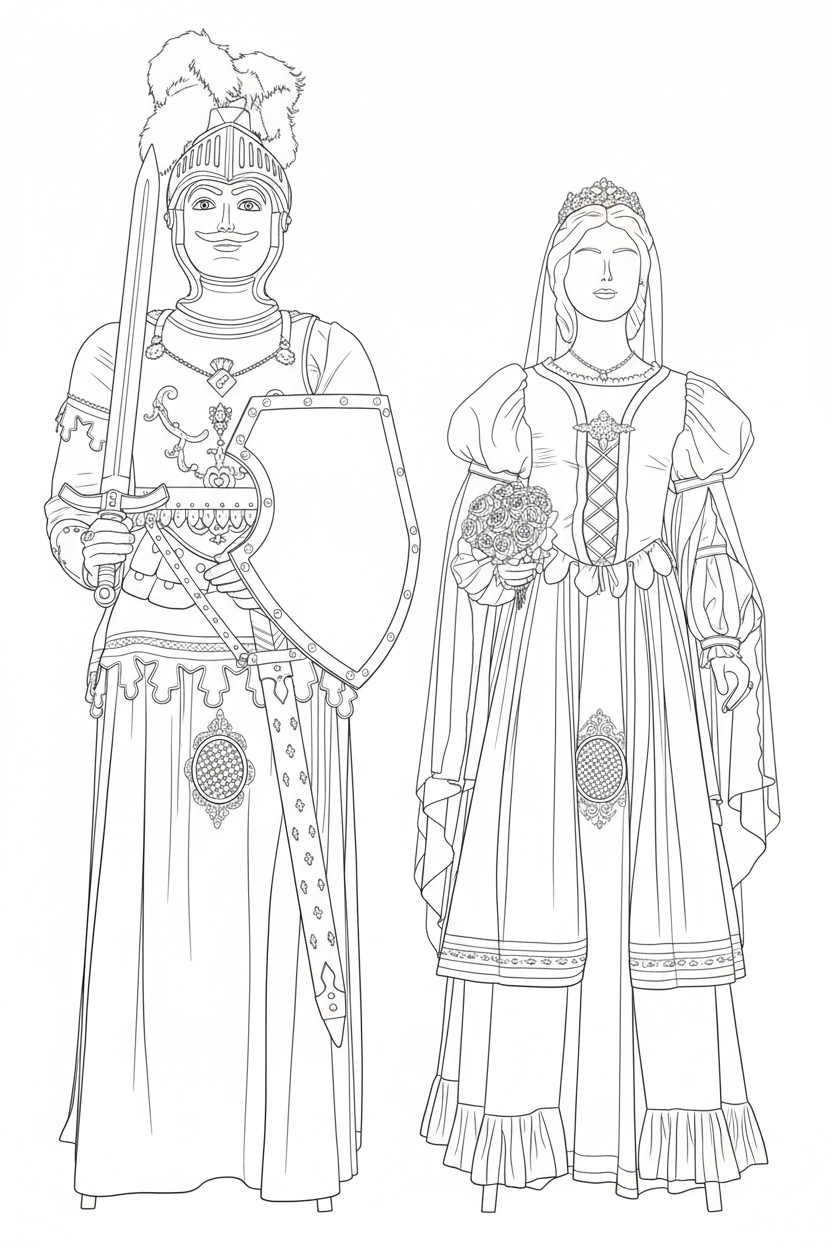 L'any 1985, després que els seus antecessors, popularment coneguts com el Ferrany i la Ferranya, no agradessin a la població; l'ajuntament decideix crear dues noves figures: Ell és en cavaller Guillem d'Olorda, de la senyoria dels Dufort del segle XIII. Ella és la princesa Violant de Bar, en referència a la seva breu estada a la ciutat quan anava a Barcelona a casar-se amb el rei Joan I. Es van crear a can Boter, Tiana, alhora que el seu company de vila el Drac de Sant Feliu, en marc de la llegenda santfeliuenca el Cavaller Guillem i el Drac de Sant Feliu. On el cavaller salva a la princesa de les urpes del ferotge Drac, els dos personatges es van enamorar i per celebrar la mort del Drac, van ballar al bell mig de la plaça envoltats de tots els ciutadans de Sant Feliu. Així i tot, les figures originals no van acabar d'agradar a la població, per tant, es decideix refer-les l'any 1987, aquest cop al taller Casserres, a Solsona, a mans del mestre solsoní Manel Casserras i Boix. Des de llavors han ballat per carrers i places tant dins com fora de la seva vila, a Sant Feliu els podem trobar a les Festes de Maig i a les Festes de Tardor on prenen un paper essencial en una multitud d'actes, a més d'altres actes que requereixen la seva presència. El 14 de setembre de 2024, en un acte ple de sentiment i passió sota el nom d'Eternament, Guillem i Violant van estrenar unes noves vestimentes dissenyades pel figurinista Pau Fernández.