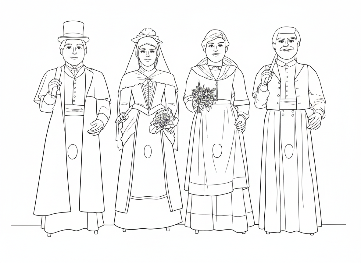 Amb l'Esbart Dansaire al capdavant, l'Agrupació Cultural Folklòrica, l'any 1988 decideix crear ''La Festa Berguedana'' un projecte el qual prenia de model la Patum de Berga. Per a l'ocasió es van encarregar a en Josep Cardona, popularment conegut com en ''Nona'' totes les figures que havien de prendre part en aquella obra teatral. L'Àliga, els Capgrossos, la Mula Guita, els Turcs i Cavallets, i entre molts d'ells, es creen els quatre gegants, en Jordi, la Montserrat, la Laia i en Llorenç. Aquelles figures només havien de ser utilitzades per aquella ocasió tot i que un any més tard, al 1989, és quan es crea la colla gegantera, la mateixa que més de trenta anys després encara continua sent l'encarregada de fer ballar les figures. En Jordi i la Montserrat es van dissenyar amb el vestuari de ''Dansa Galana'', un ball creat per l'Esbart Verdaguer de Barcelona l'any 1957, inclòs dins el repertori de l'Esbart Dansaire de Sant Feliu. En Llorenç i la Laia, en canvi, duien el vestuari dels balladors del Ball de la Soca, l'arrelat tradicional ball santfeliuenc que balla l'Esbart dansaire any rere any el dilluns de la Segona Pasqua a l'Aplec de la Mare de Déu de la Salut. Les figures actualment, van abillades tal com ho farien els burgesos i pagesos del Sant Feliu de finals del segle XIX. Es tracta d'un vestuari fet a mida i pensat exclusivament pels quatre gegants; de la mateixa manera que les joies i els accessoris que porten les figures. L'encarregat dels dissenys i confecció de les noves vestidures va anar a càrrec de Marc Udina i de Goreti Puente. Els vestits es van presentar el dia 2 d'octubre de 2021 amb un espectacle a la Plaça Lluís Companys plena de gom a gom com a prèvia a la Festa d