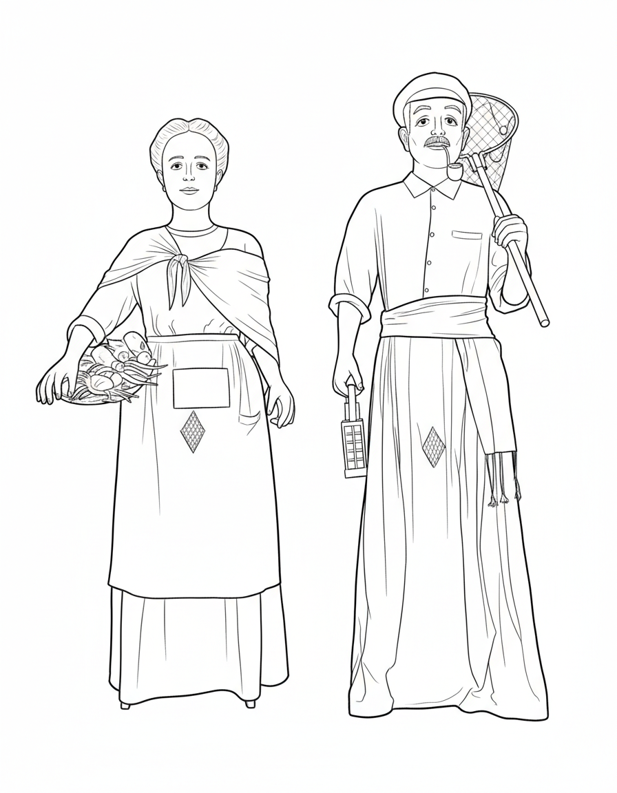 Els gegants representen un pescador i una apedaçadora. Són uns personatges típics de la vila del segle XX. En memòria de la gent gran del poble que han viscut en aquella època.