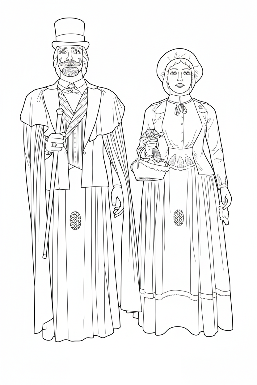 Ell representa el Marquès de Marianao. Aquest marquès va venir de Cuba, ric i poderós i va fer construir el Palau Marianao a semblança dels que hi havia a l'illa. La geganta representa una pubilla de Sant Boi i porta un cistellet amb pomes en record dels antics conreus de pomeres de la nostra vila.