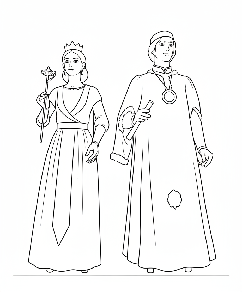 Aquesta parella de gegants representen dos prínceps que venen de Toscana que van visitar Sant Joan de les Abadesses es van quedar enamorats de la vila, i es van quedar a viure. El nom dels gegants van ser escollits pel mossèn Esteve. El nom del Gentil ve d'un extret d'un personatge del poema Canigó de l'any 1886 de Jacint Verdaguer. El nom d'Isaura és a honor a la Clemença Isaura personatge mític de l'època mitjana que es diu que va ser la creadora dels Jocs Florals a Tolosa. L'any 2023 van ser restaurats per la Clara Anglada del taller Aglà de Cassà de la Selva i es van fer uns vestits nous i es van fer una rèplica.