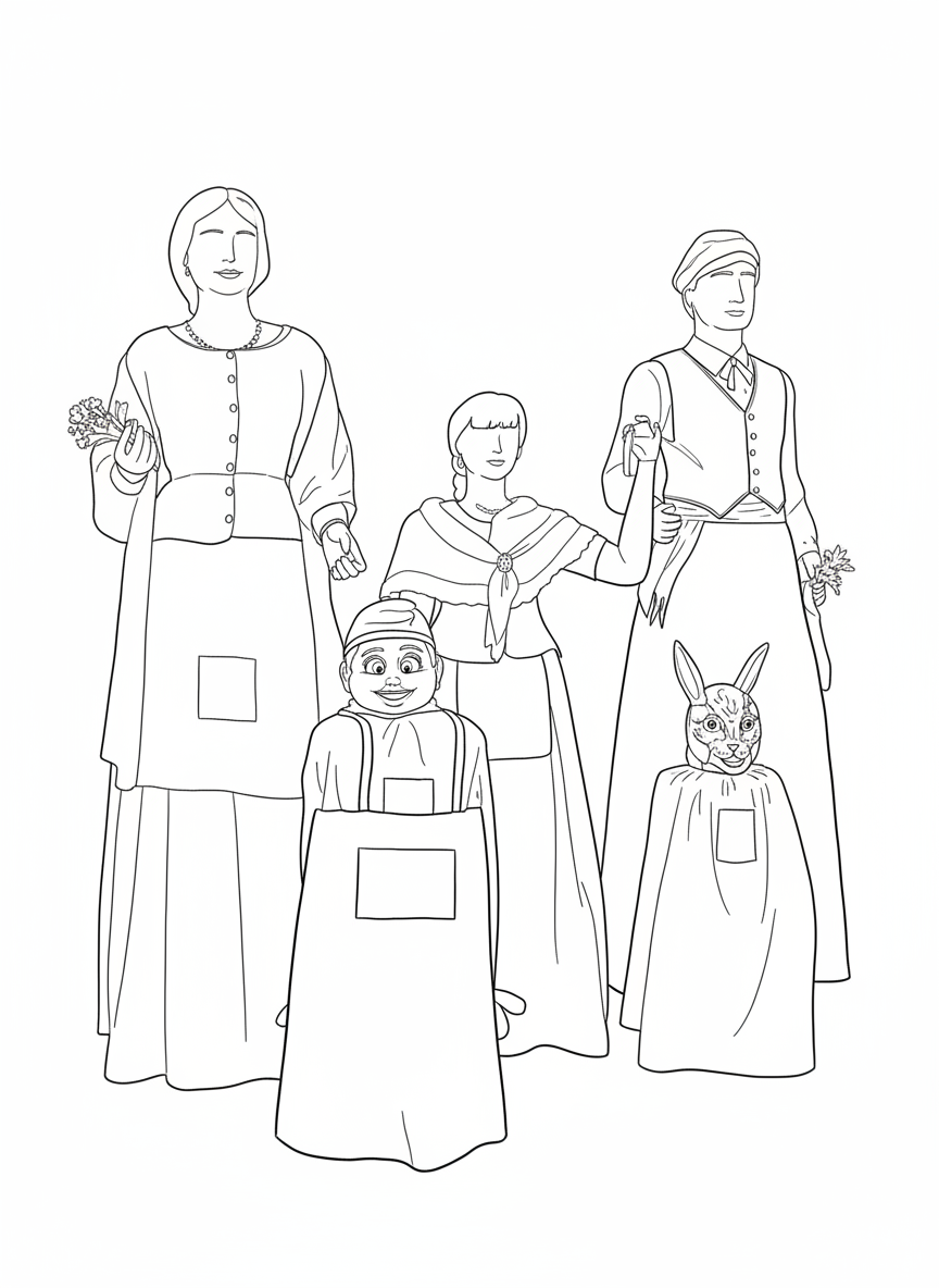 Representen una parella de bosquerols, ells porten els noms relacionat amb les plantes, amb la elaboració de la ratafia.