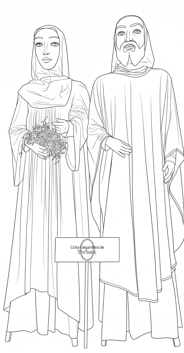 Ell representa un jueu batejat i ella una jueva tortosina la seva muller, van ser creats L'any 1999 any en que Tortosa celebra el 850è aniversari de la carta de poblament, es van celebrar molts actes commemoratius un d'ells la creació de aquests , l'objectiu de la seva construcció era completar la triologia de les tres cultures: Cristians, moros i jueus que ha determinat la historia i les costums de la ciutat de Tortosa.