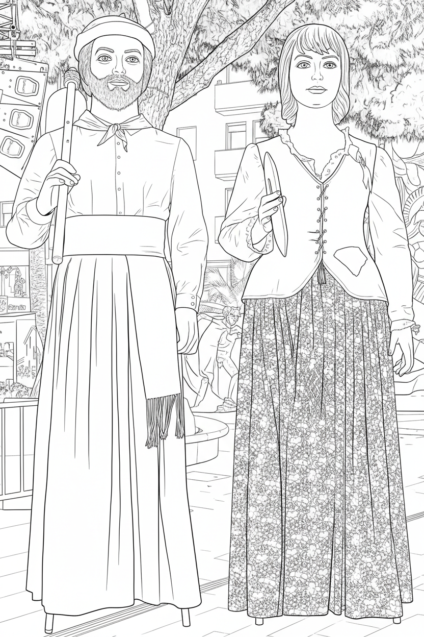 La Montserrat representa una teixidora del poble. En Salvador representa un jove pagès. La geganta es va estrenar el mes de juny del 2014 i el gegant el novembre del mateix any. El dia de l'estrena del gegant es van casar a la Plaça Major.