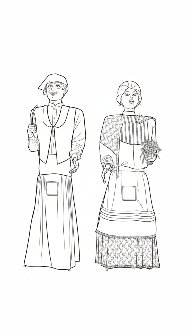 JAUME , respon al nom del patró de la Reial Ciutat, Sant Jaume, vol representar un pagès del Delta de l'Ebre, un treballador del seu camp d'arròs, que amb la seva falç a la mà, es deixa l'esquena dia rere dia ajagut al seu arrosar, per desprès d'una dura jornada, anar a la seva barraca feta de fang i palla, per menjar alguna cosa i dormir al seu jaç de palla. RÀPITA , esposa fidel de Jaume, la que li alegra el treball tot cantant-li els tipics cants improvisats del Delta: Les Rondalles, així Ràpita recita versos sobre la marxa, acoblant la lletra d'aquests a allò que li passa pel cap en aquell moment.