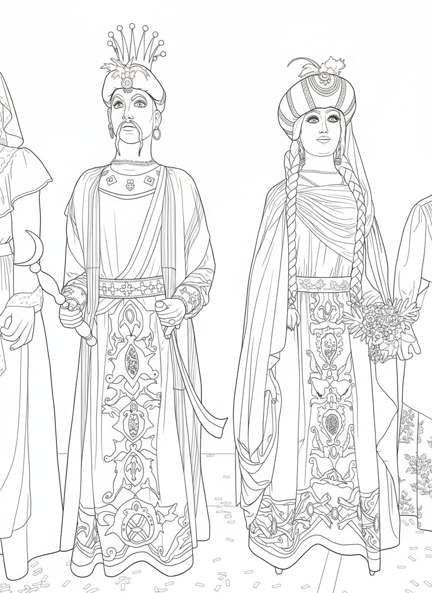 Aquesta parella de gegants va ser la segona parella que va gaudir el poble de la Bisbal. Construïts l'any 1955 a l'Escola de Belles Arts i Oficis de la Bisbal pels mateixos alumnes de l'escola dirigits pel mestre Joan Turbau. Com que es van construir abans de que hi hagués colla gegantera van passar a ser propietat de l'ajuntament. S'han mantingut originalment fins el dia d'avui. L'estiu del 2013 es va fer una primera remodelació a causa del desgast de la roba al cap de 60 anys on es van canviar les capes i els barrets. L'any 2021 es van sometre a una restauració total i renovació dels vestits al Taller AVALL de Reus.