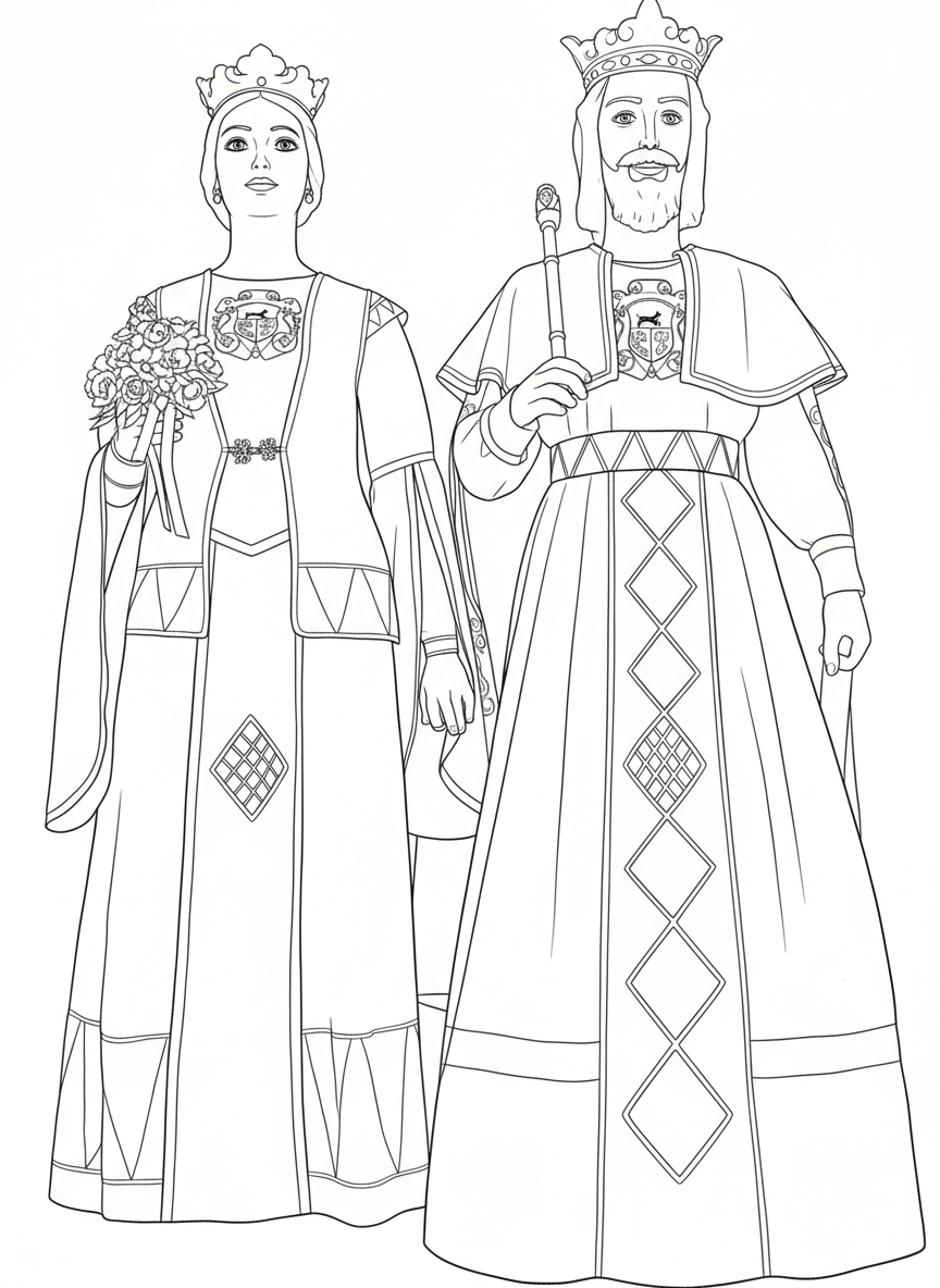 Representen un rei i la seva dama. Ell porta el nom d'un compte del comtat de Cabrera. Aquesta parella tot i ser motlle del taller El Ingenio de Barcelona és una rèplica de l'any 2010 construïda per Toni Mujal i Obradors. Aquesta parella conserva l'escut de Calella de l'any 1961 (es pot observar en els vestits). També es conserva el lleó coronat del ceptre de Bernat I. Els gegants han renovat vestuari, per a ella el color verd com a principal i per a ell el vermell, amb acabats en groc, platejat i daurat, les faldilles són d'un to fosquet tirant a negre perquè tots dos segueixin la mateixa estètica l'un de l'altre com en l'anterior vestuari. Com a novetat els acabats del vestuari són de triangles, això ho podem observar en el cinturó d'en Bernat o la faldilla i la jaqueta que duu l'Elisenda. Aquesta colla va viure la 28a Ciutat Gegantera de Catalunya, l'any 2013 i la 3a fira del món geganter l'any 2010.
